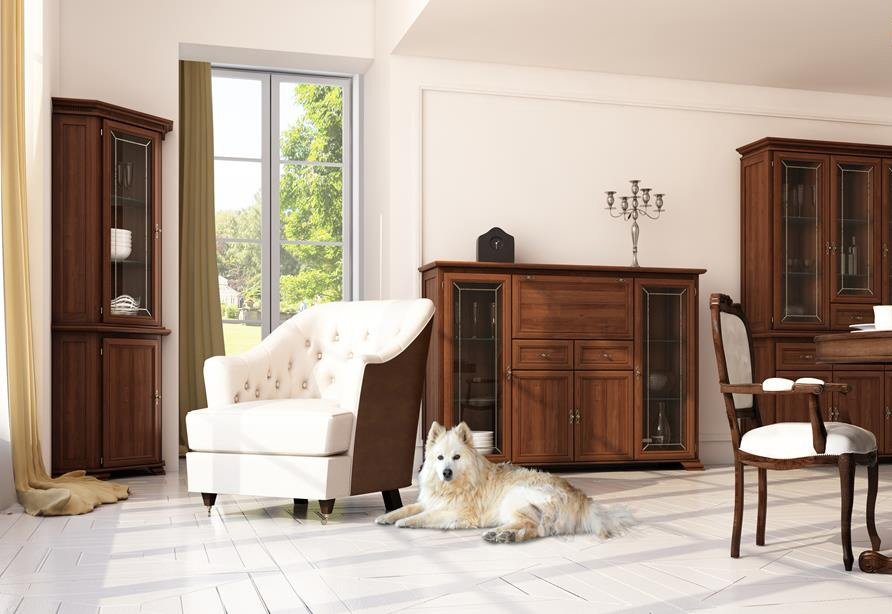 Bolero nábytek ocení lidé milující nadčasovou eleganci, tedy klasiku v pravém slova smyslu. Ideální poměr ornamentů k čistým sousedícím plochám, ozdobné lemování ve skle a dvířkách, masivní nožičky, kovové ručky v barvě starého zlata dodávají pocit útulnosti. Nábytek vyniká v rozlehlé obýváku, kde vytváří příjemnou atmosféru odstínem tmavého ořechu. Pokud jde o ložnice, zde je třeba střídmě vybírat počet kusů, protože nábytek Bolero dominuje svým masivním charakterem, ornamenty a místnost nabírá na útulnosti, pokud je plná světla, případně je větší. Při ložnicích dáváme do pozornosti komody a mnohé typy vitrín s nástavbami.