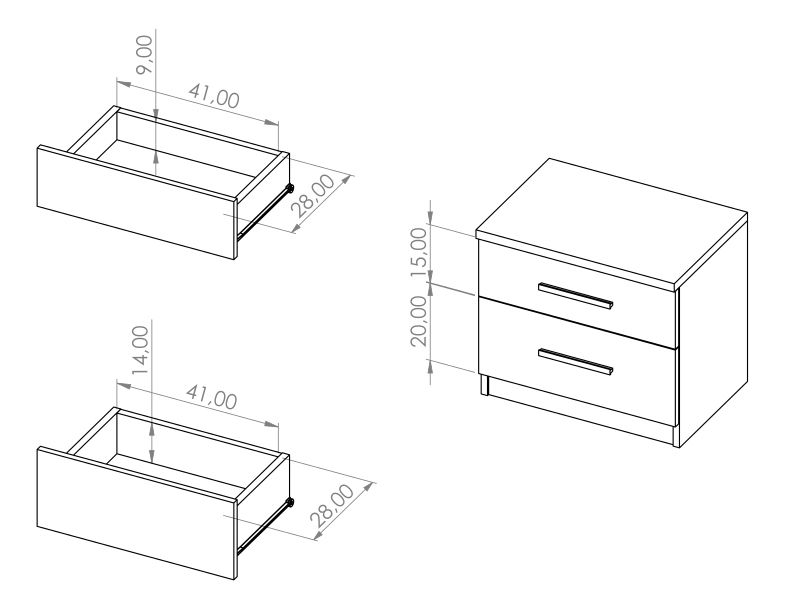Korpus: Dřevotřísková deska (16 mm) + Vrchní deska: Dřevotřísková deska (22 mm)