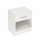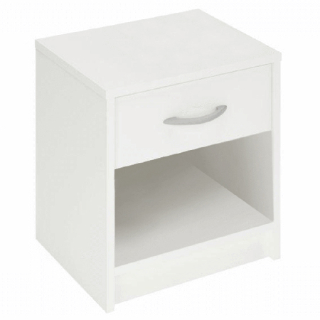 Noční stolek jednoduchého designu a v bílém barevném provedení Vám velmi dobře poslouží ve Vaší ložnici. Dá se dobře kombinovat s dalším zařízením ve Vaší ložnici. Všechny potřebné věci budete mít hned po ruce - pohár s vodou, budík nebo lampu. Rozečtenou knížku si pohodlně umístěte do otevřené poličky. Horní zásuvka Vám poslouží na odkládání různých drobností.