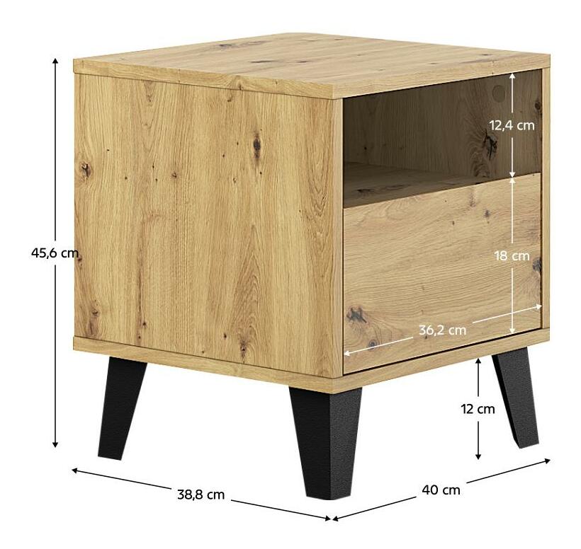 Noční stolek Brisas (dub artisan + černá) *výprodej