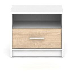 Jednoduchý noční stolek KOM1S s jednou poličkou, který obsahuje 1 zásuvku na válečkových kolejničkách.