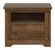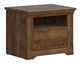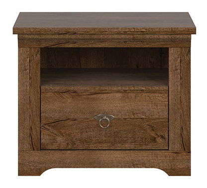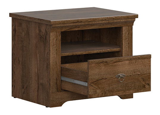 Elegantní noční stolek, který se vrací k tradičnějšímu designu. Tmavší barevné provedení s kresbou dřeva potěší zejména milovníky starožitného nábytku. Stolek má jednu otevřenou polici a jednu zásuvku na válečkových kolejničkách.