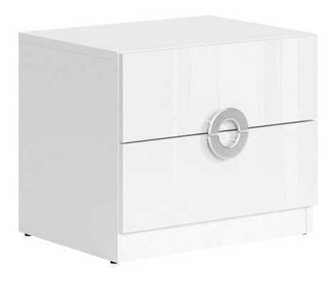 Praktický noční stolek modelové řady Ringo je v moderním minimalistickém designu. Velká ozdobná klika slouží k otevírání zásuvek a je ve stříbrné barvě. Zásuvky jsou na válečkových kolejničkách. Montáž je jednoduchá.