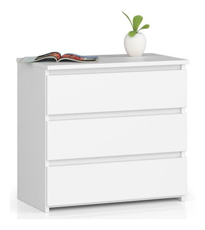 Noční stolek Caleum je ideální pro minimalistické nebo skandinávské interiéry. Nábytek je vyroben z kvalitní a oděru odolné laminované desky o tloušťce 16 cm. Hrany komody zase obsahují ABS hrany, díky čemuž jsou odolné vůči poškození. Skříňka se skládá ze tří zásuvek, které se snadno a tiše pohybují díky bezvadným kovovým vodícím lištám. Je proto velmi pohodlný pro používání a zároveň poskytuje spoustu volného prostoru pro použití. Jedná se o kus nábytku s jednoduchým tvarem, díky čemuž je univerzální - lze jej použít v různých interiérech. Nábytek se vyznačuje odolností a pevným zpracováním. Noční stolek vypadá vizuálně bezvadně a dodává interiéru více elegance.