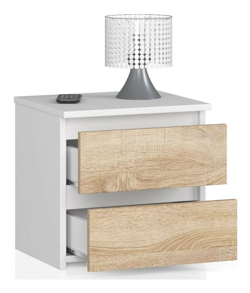Noční stolek Cleania CL2 (bílá + dub sonoma)