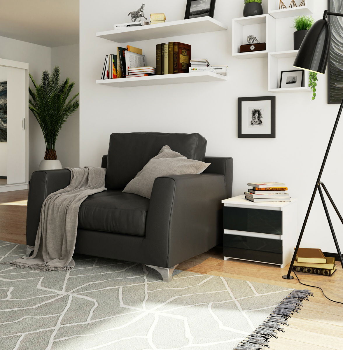 Noční stolek Cleania CL2 (grafit lesk)