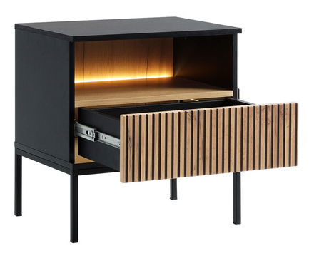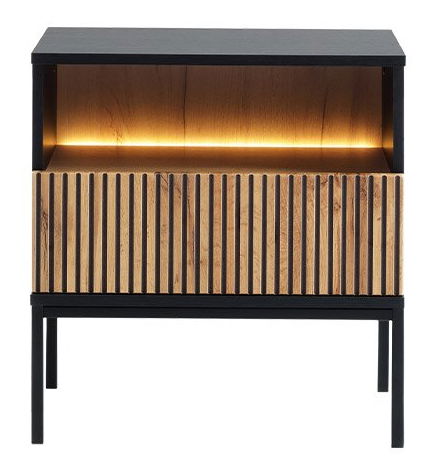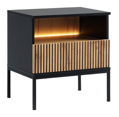 Noční stolek Dernas S54 (černý grafit + dub wotan) (se žlutým LED osvětlením)