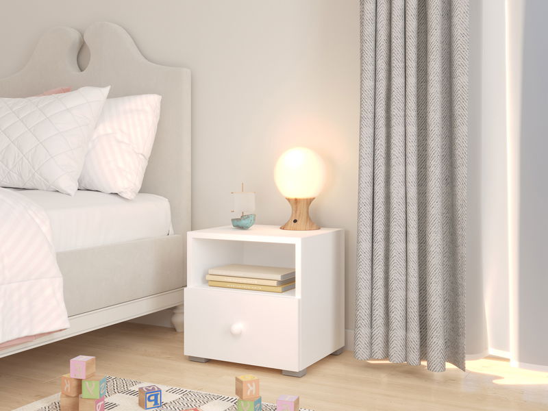 ZobrazitNoční stolek Effie je skvělým doplňkem do ložnice nebo dětského pokoje. S moderním a jednoduchým designem a přitažlivým barevným provedením se pěkně kombinuje s ostatními prvky místnosti. Je praktický s otevřenou poličkou pro knihy a šuplíkem pro drobnosti, jako jsou telefon, sklenici a lampu, vždy po ruce.