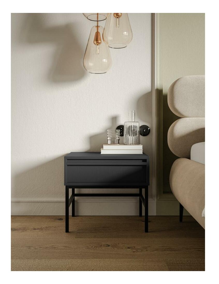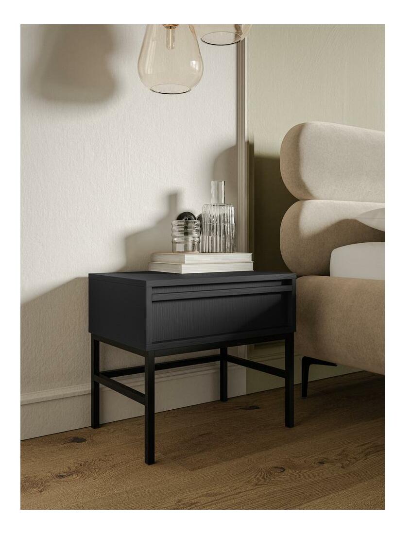 ZobrazitHledáte alternativu k módním lamelám? Oceňujete minimalismus ve svém interiéru? Pokud ano, určitě se vám bude líbit kolekce nábytku Noční stolek je nedílnou součástí vybavení ložnice. je malý černý tvar, který se skvěle hodí do industriálních a moderních interiérů. Součástí nábytku je stabilní černý ocelový rám, který ocení i milovníci pořádku – jednoduše pod ním zametete podlahu nebo to udělá za vás čistící robot. Skříňka je vybavena praktickou zásuvkou, do které se snadno vejdou kapesníky, nabíječka, pouzdro na brýle a další drobnosti Detaily produktu: korpus: 16 mm laminovaná deska se strukturou dřeva (U12007 WP Black Graphite), podstavec: ocel s práškovým nástřikem. , hrany chráněny 0,8 cm ABS hranou, která zaručuje zpevnění proti mechanickému poškození, zásuvka vybavena systémem push to open, nemá systém tichého zavírání, barva: grafitově černá.