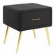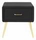 S tímto nočním stolkem vytvoříte ve své ložnici okouzlující atmosféru. Stolek je vyroben z odolného sametu, který se snadno udržuje, a díky svému designu jistě upoutá pozornost. Černou barvu čalounění doplňují zlaté nohy vyrobené ze železa, které zajišťují stabilitu. Zásuvku, která je součástí stolku, lze využít jako odkládací prostor pro knihy či jiné drobnosti.