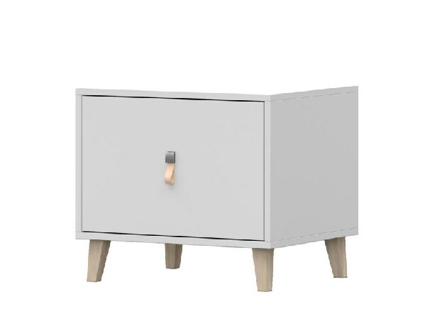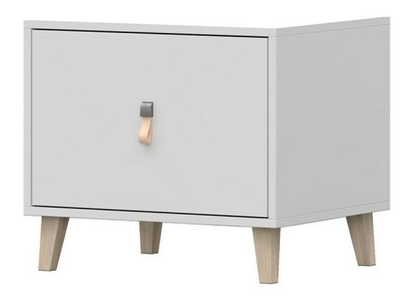 Noční stolek Figu je vyroben ve skandinávském stylu a nabízí praktické řešení pro vaši noční odkládací potřebu. S výškou 45 cm, šířkou 55 cm a hloubkou 45 cm je ideální velikostí pro umístění u postele. Stolek je vyroben z 16 mm silné dřevotřísky a má 0,5 mm ABS hrany, což zaručuje jeho kvalitní vzhled. Kožené úchyty ve tvaru poutka a 14 cm vysoké dřevěné nožičky dodávají stolku elegantní vzhled. Jeho hlavní výhodou je jedna zásuvka s kuličkovým vedením, které zajišťuje hladké a bezproblémové otevírání. Noční stolek Figu je praktickým a moderním doplňkem do vašeho interiéru.