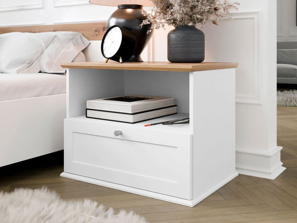 Noční stolek Fritz 1SZ (bílá + dub lefkas)