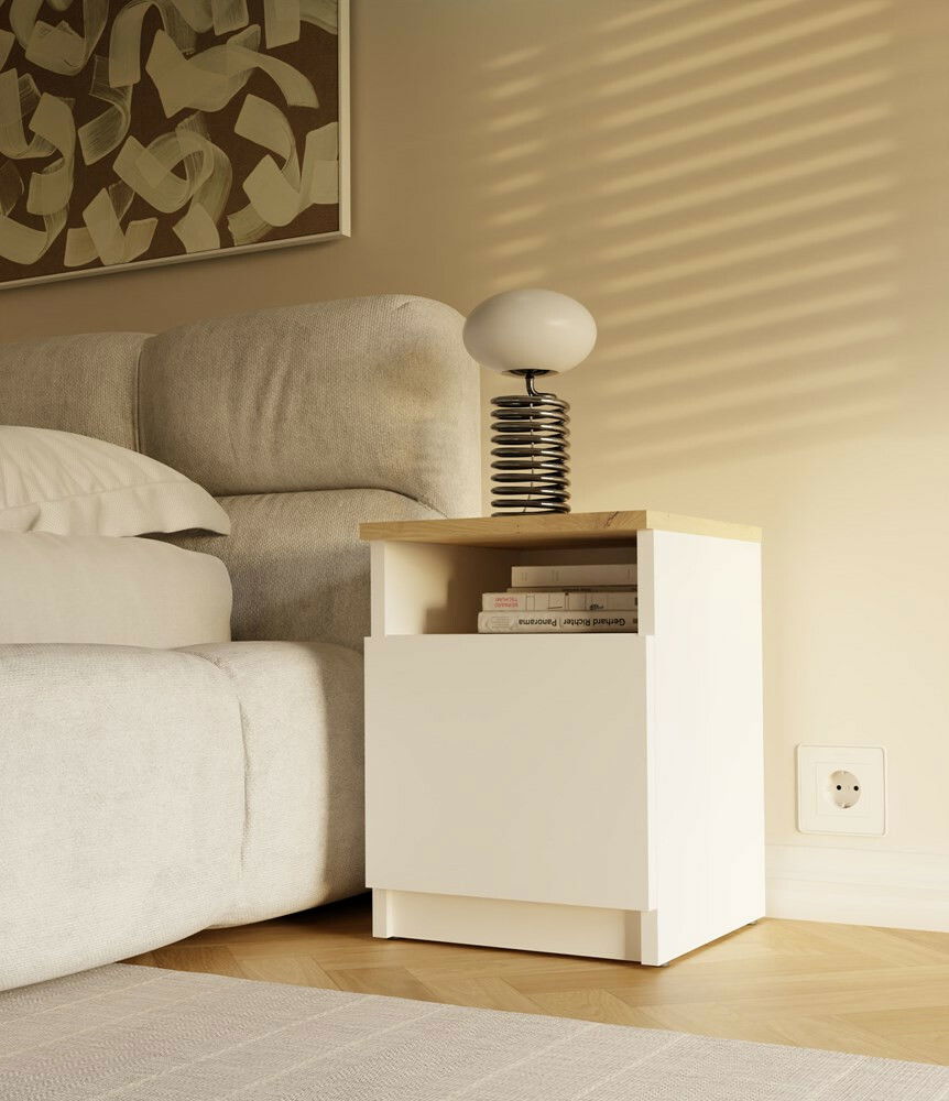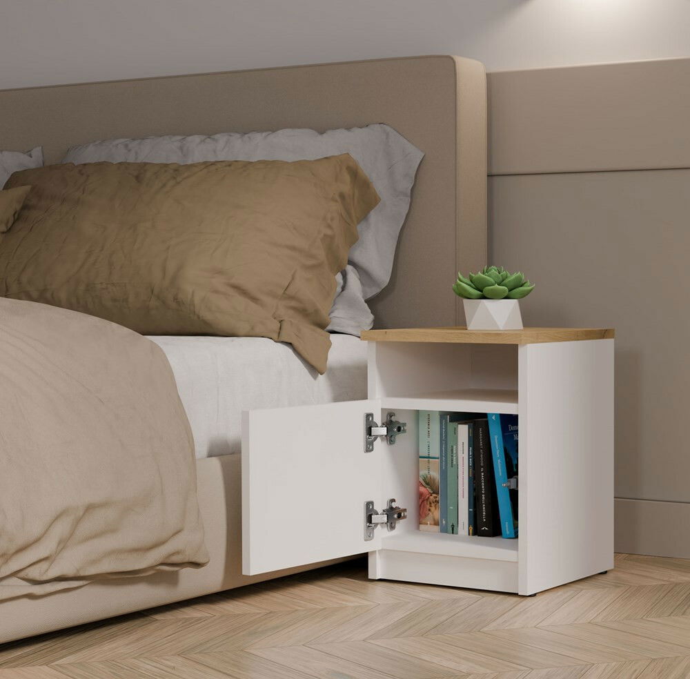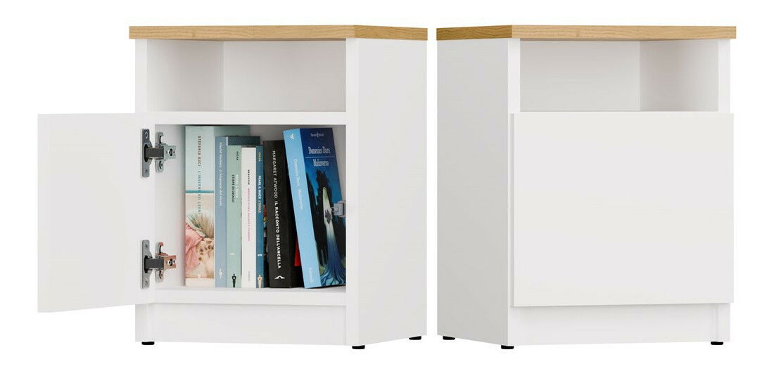 Noční stolek Gustaban 2 (bílá + dub artisan)