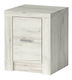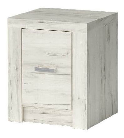 Jednoduchý, malý a pohodlný noční stolek, ideální do ložnice. Můžete si na něj položit budík, sklenici vody nebo telefon. Uvnitř je police dělící prostor na polovinu, což umožňuje organizaci. Kovová úchytka dokonale ladí s celým kusem nábytku.