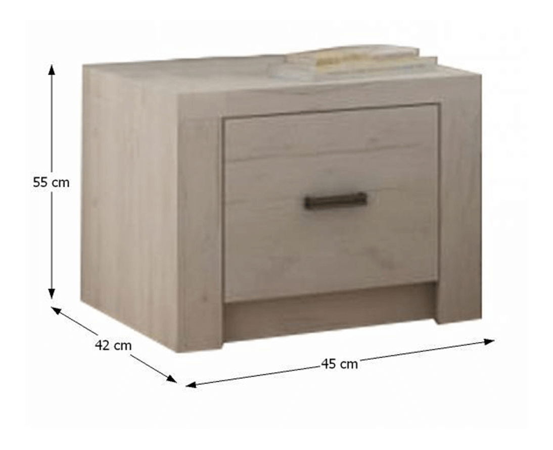 Noční stolek Inneas (jasan bílý) je praktický a moderní nábytek, který dokáže poskytnout komfortní uložení pro vaše věci. S výškou 55 cm a hloubkou 42 cm je ideální pro umístění vedle vaší postele. Tento noční stolek je vyroben z DTD laminované/ABS hraněné desky o tloušťce materiálu 48 mm a tloušťce materiálu zbývajících částí 16 mm. Jeho kovové úchyty dodávají moderní vzhled. Noční stolek Inneas se dodává v demontu, ale jeho jednoduchá montáž umožňuje rychlé a snadné sestavení. V jasan bílém barevném provedení se hodí do každého interiéru.