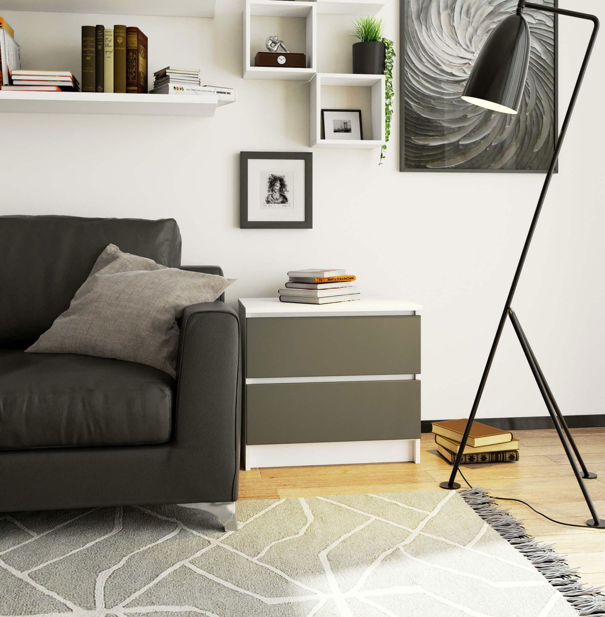 Noční stolek Kalista (bílá + šedá)