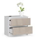 ZobrazitNoční stolek Kalista se vyznačuje minimalistickým designem, funkčností, komfortem používání a vysokou estetikou. Byl vyroben z kvalitní laminované desky o tloušťce 16 milimetrů, která je odolná vůči poškození. Noční stolek je určen pro svépomocnou montáž a díky svým malým rozměrům (šířka 60 centimetrů) je vhodný i do malých ložnic. Je k dispozici v našem internetovém obchodu za mimořádně konkurenční cenu. Korpus nočního stolku sestává z matné bílé laminované desky. Čela zásuvek jsou vyrobena z 19 mm MDF vysokého lesku. Zásuvky se pohybují na kovových válečkových vodítkách. Hrany jsou pokryty ABS lemováním, zajišťují tak vysokou ochranu proti poškození. Dostupný ve více barevných provedeních.