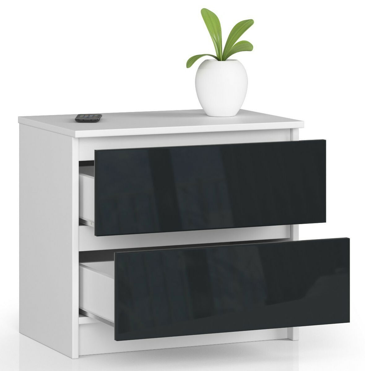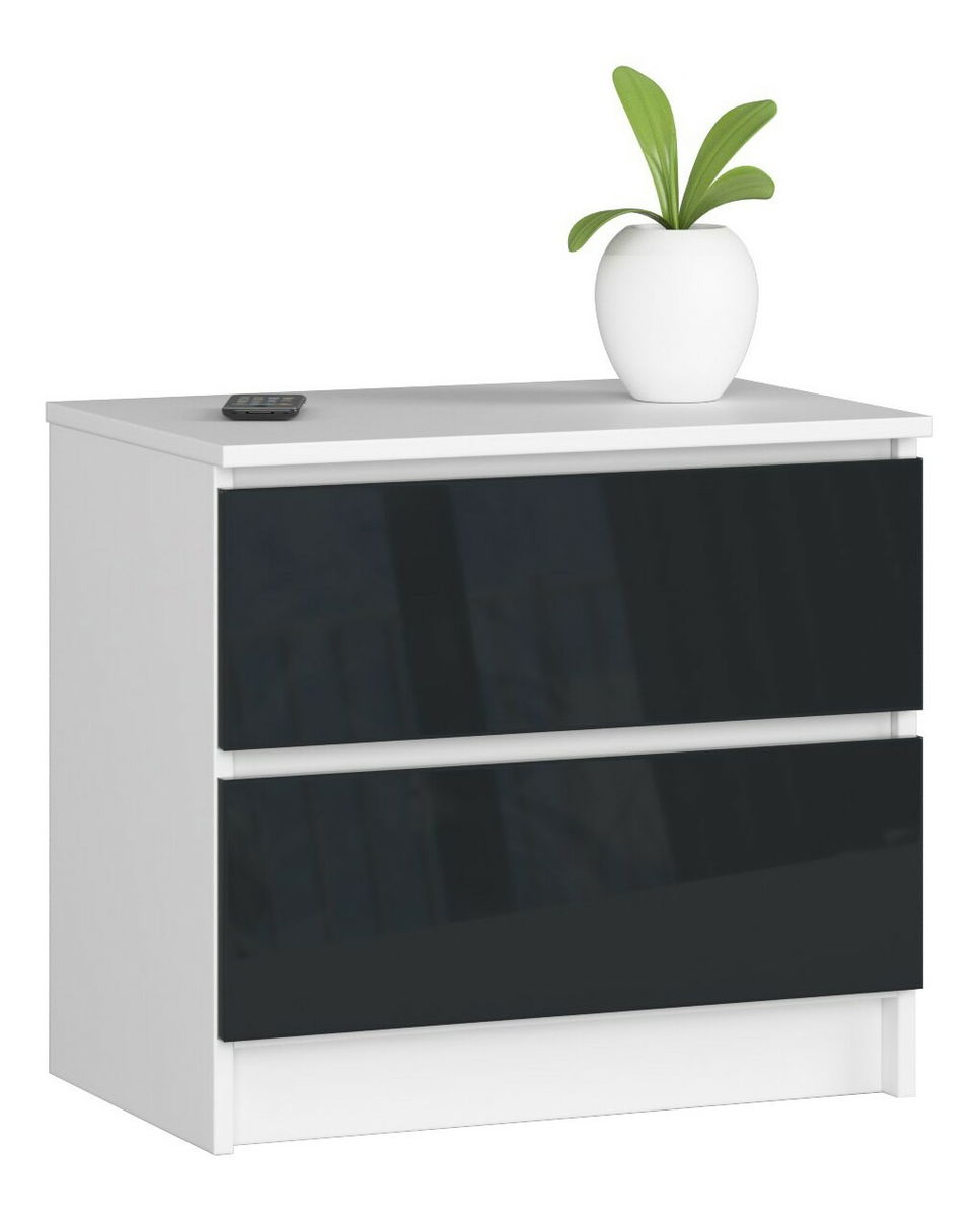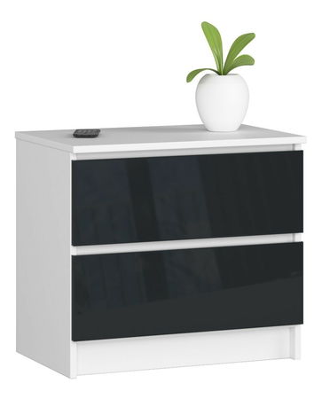 ZobrazitNoční stolek Kalista se vyznačuje minimalistickým designem, funkčností, komfortem používání a vysokou estetikou. Byl vyroben z kvalitní laminované desky o tloušťce 16 milimetrů, která je odolná vůči poškození. Noční stolek je určen pro svépomocnou montáž a díky svým malým rozměrům (šířka 60 centimetrů) je vhodný i do malých ložnic. Je k dispozici v našem internetovém obchodu za mimořádně konkurenční cenu. Korpus nočního stolku sestává z matné bílé laminované desky. Čela zásuvek jsou vyrobena z 19 mm MDF vysokého lesku. Zásuvky se pohybují na kovových válečkových vodítkách. Hrany jsou pokryty ABS lemováním, zajišťují tak vysokou ochranu proti poškození. Dostupný ve více barevných provedeních.
