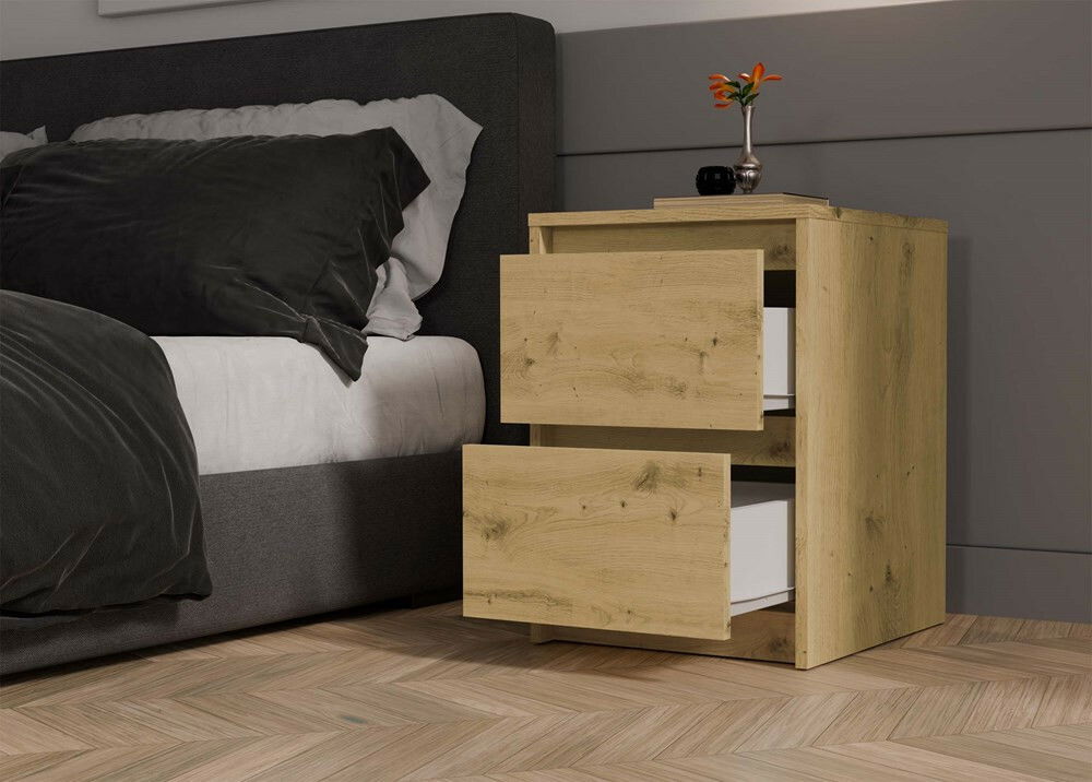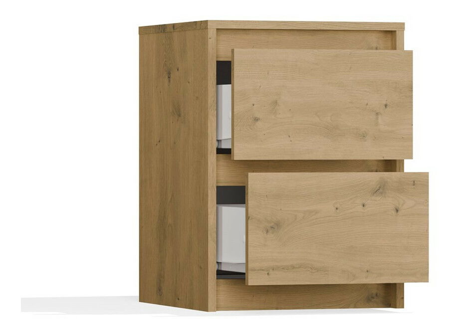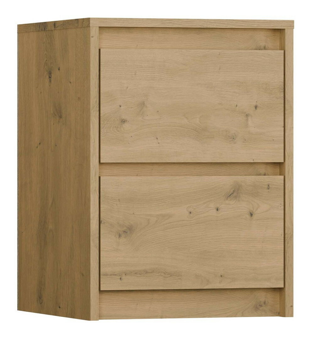 ZobrazitNoční stolek Kentero 1 v elegantní barvě dub artisan je ideálním doplňkem do každé ložnice, kde kombinuje moderní design s praktičností. Jeho minimalistická konstrukce a kvalitní zpracování z laminované dřevotřísky zajišťují dlouhou životnost a snadnou údržbu. Zásuvky na válečkových vodítkách nabízejí pohodlné a bezpečné používání, přičemž dostatečné rozměry (šířka 40 cm, hloubka 43 cm, výška 55 cm) umožňují umístění všech potřebných drobností, jako jsou brýle nebo telefon. Tento noční stolek je skvělou volbou pro ty, kteří ocení spojení funkčnosti a estetiky.