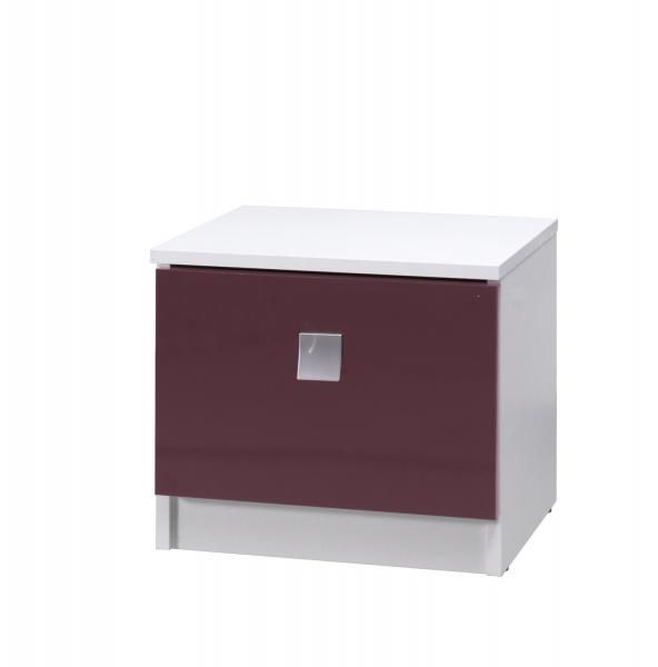 Noční stolek Laurenia v fialové barvě s lesklým povrchem je skvělým doplňkem pro váš domov. z tohoto nočního stolku moderní kousek nábytku, který se může hodit do každého pokoje. Jeho kvalitní konstrukce zajišťuje stabilitu a trvanlivost. Noční stolek Laurenia vám umožní mít vše po ruce a zároveň zvýší estetickou hodnotu vašeho interiéru.