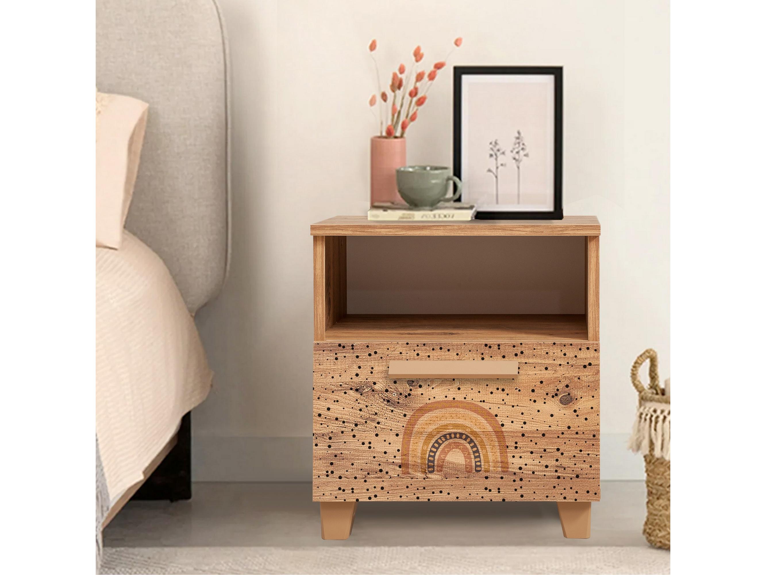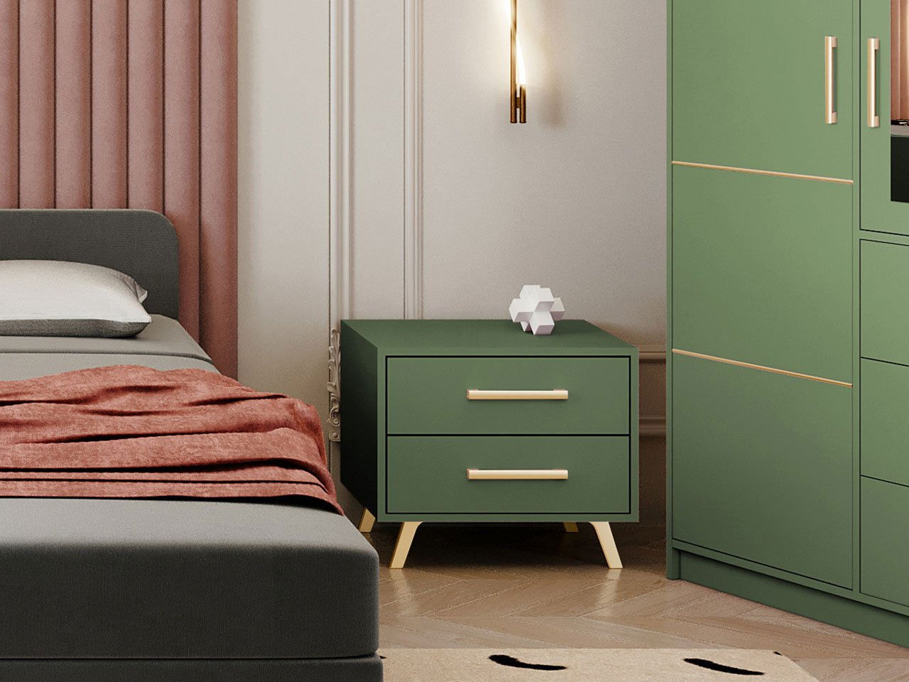 Noční stolek je ideální volbou pro ty, kteří hledají pohodlí a styl. Stylově zařízená ložnice nebo dětský pokoj je místo, které podpoří váš každodenní relax a noční odpočinek. Pohled do místnosti vybavené funkčním a především vizuálně atraktivním nábytkem vás dobře naladí na celý den a zlepší náladu i při velmi brzkém vstávání. Jedním z tohoto typu nábytku je noční stolek Lily II. Jeho módní barvy upoutají pozornost, svádějí k tomu, že je něčím jiný než mají vaši přátelé ve svých ložnicích nebo dětských pokojích. Na pohled lákají i držadla, která se vyjímají na pozadí čel a gracióznost dodávají štíhlé nožky ve stejné barvě jako držadla. Rozměry: šířka: 54 cm, výška: 48 cm, hloubka: 41 cm Provedení: 16 mm silná laminovaná deska, PVC okraj, rukojeti a nohy: plast zlaté barvy, zásuvky: válečková vodítka Záruka: 24 měsíců