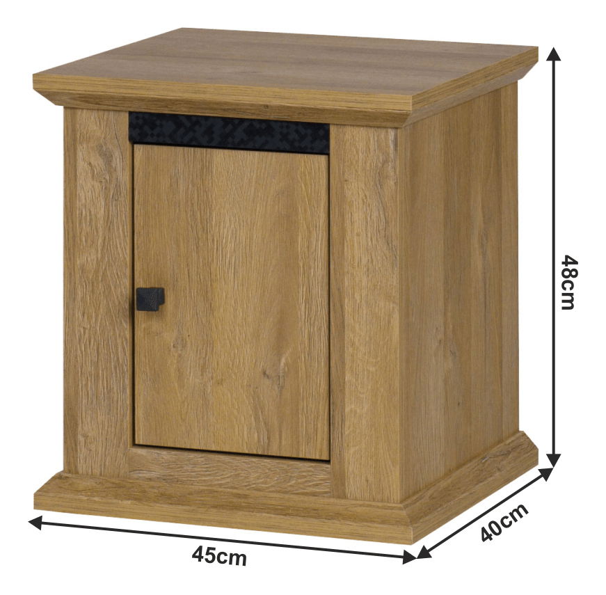 Noční stolek Leoras MZ19 (dub grand) je kvalitní a elegantní nábytek, který bude skvělým doplňkem každé ložnice. Vyroben je z DTD laminovaného materiálu, který je odolný vůči poškození a opotřebení. Stolek má barvu dub grand a rozměry 45x40x48 cm, přičemž tloušťka materiálu je 40 mm. Na stolku se nachází jedna skříňka s kovovými úchyty a 3D efektem, který dodává stolku stylový a moderní vzhled. S tímto nočním stolkem budete mít u postele vše na dosah ruky.