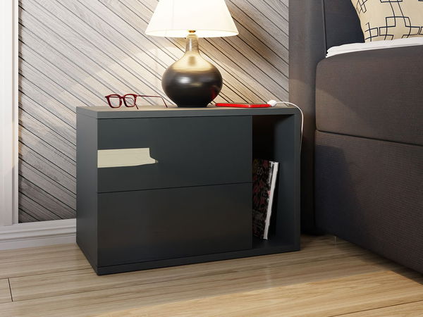 - Noční stolek Lorava (antracit + antracit lesklá)