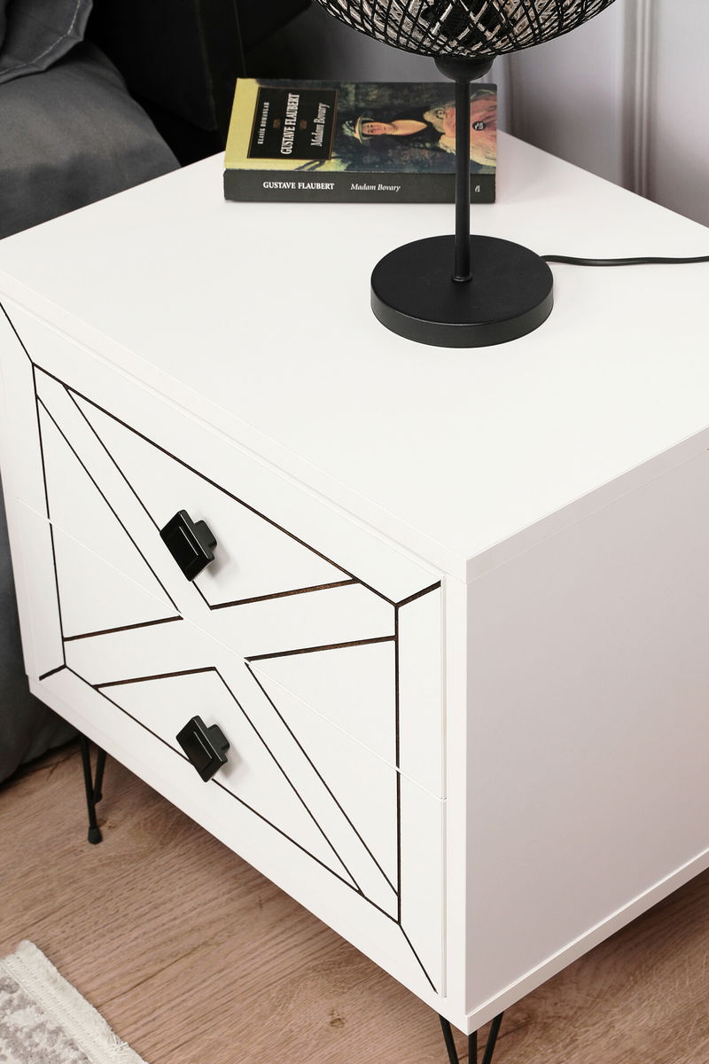 Noční stolek Luana v bílém provedení je ideální volbou pro každou ložnici. Vysoký poměr kvality a ceny činí z tohoto nočního stolku perfektní doplněk pro Váš interiér. ruce. Materiál 100% melaminová deska zajišťuje odolnost a trvanlivost stolku a usnadňuje jeho čištění. Jednoduchý a moderní design s bílým provedením dokonale zapadne do jakékoli ložnice a přinese do ní svěží a moderní vzhled.