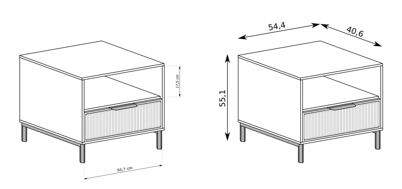 ZobrazitNoční stolek Lusy 07 (kašmír) výška 54,5 cm šířka 54,5 cm hloubka 40,6 cm. Tento noční stolek je ideální pro každou ložnici. Je vybaven zásuvkou a poličkou, což jej činí velmi praktickým a uskladní mnoho věcí. Jeho rozměry jsou dostatečně velké na to, aby se na něm vešla lampa, kniha a další věci, které potřebujete mít po ruce v noci. Jeho kašmírový povrch působí velmi elegantně a hodí se do jakéhokoli designu ložnice. Noční stolek Lusy 07 (kašmír) je dokonalým doplňkem ke každé ložní soupravě.