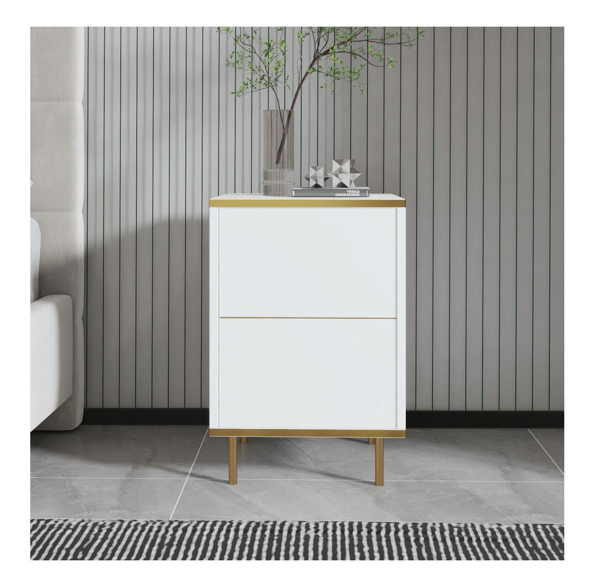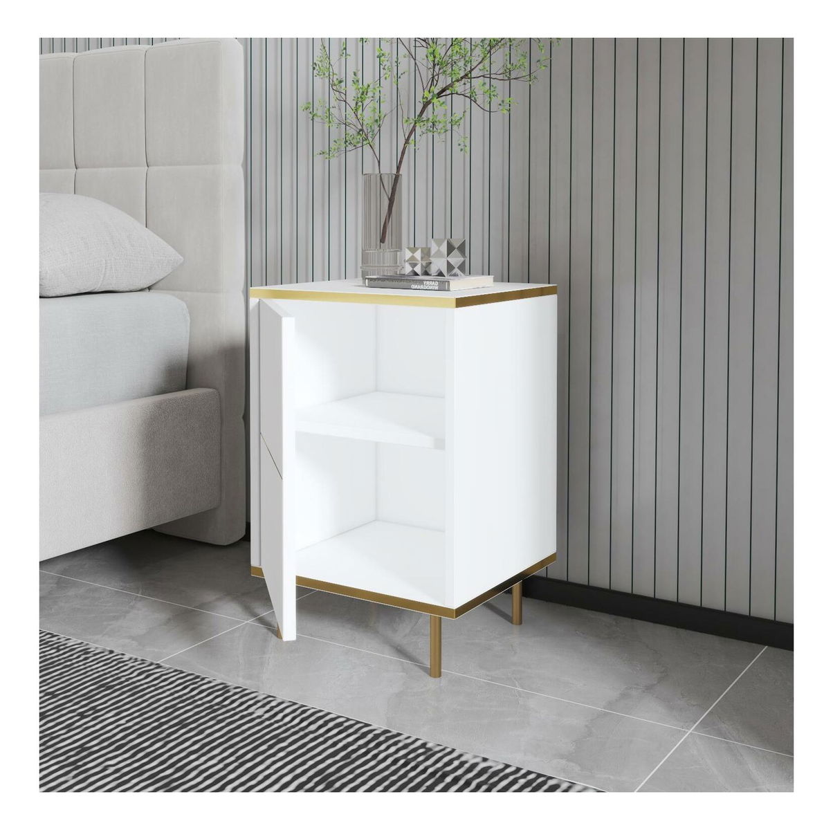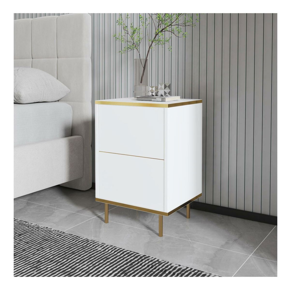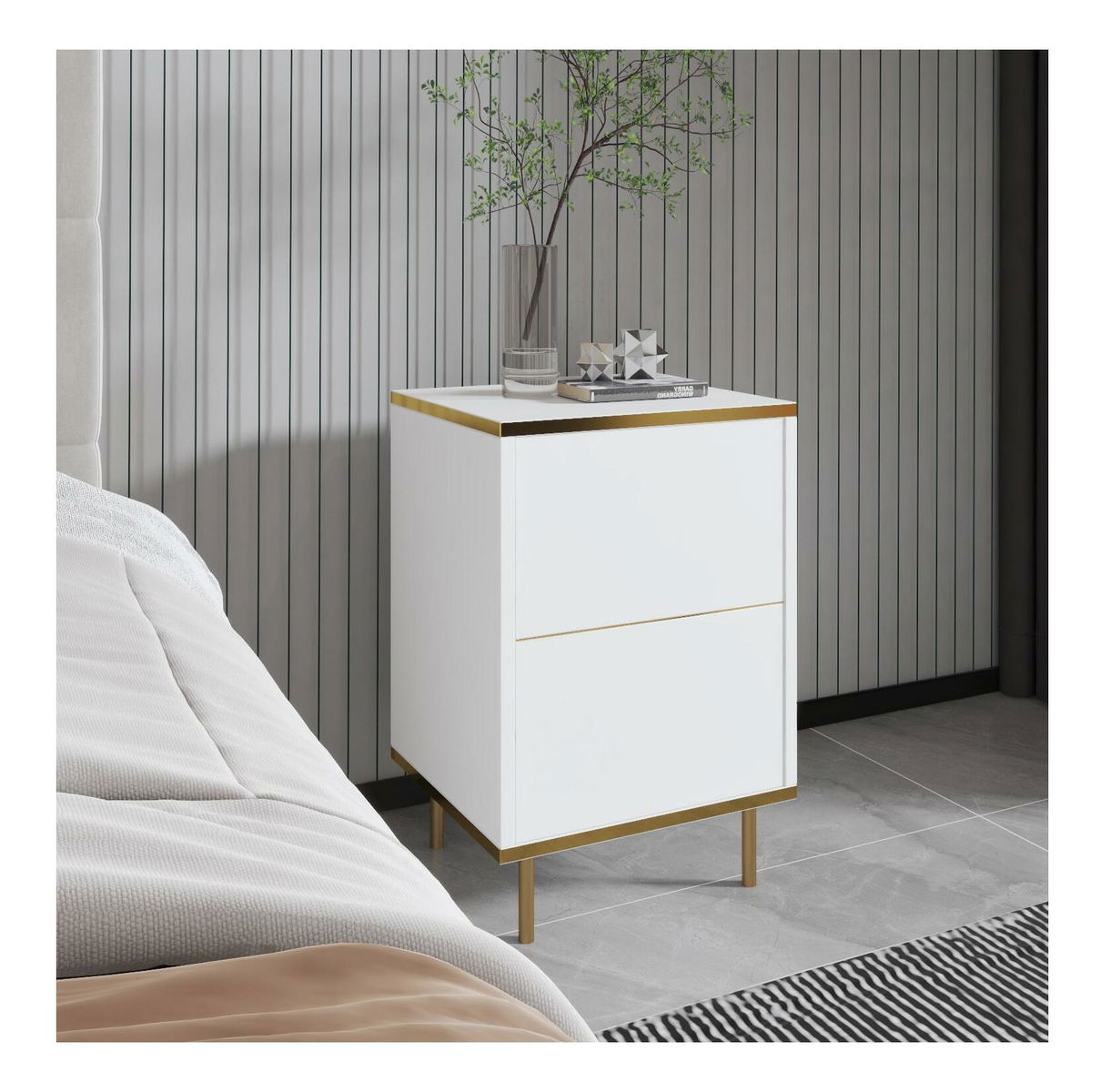 Noční stolek Mamene 1 (bílá + zlatá)