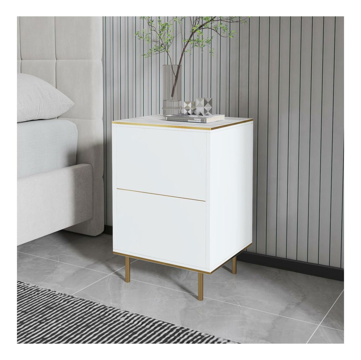 Noční stolek Mameny 1 (mramor světlý + zlatá)