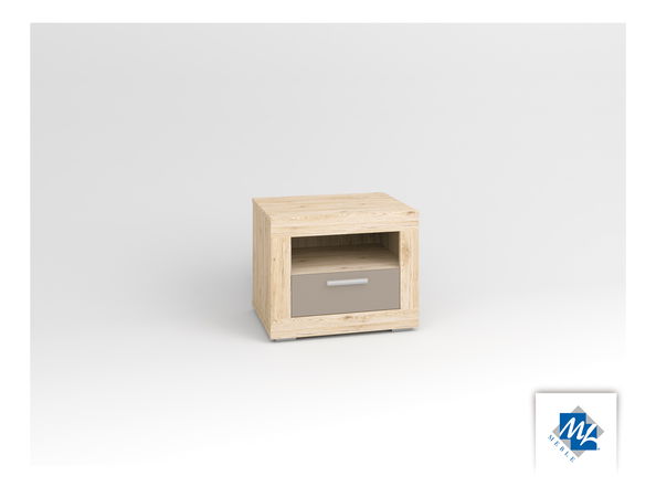 Praktický noční stolek se zásuvkou a otevřeným odkládacím prostorem.