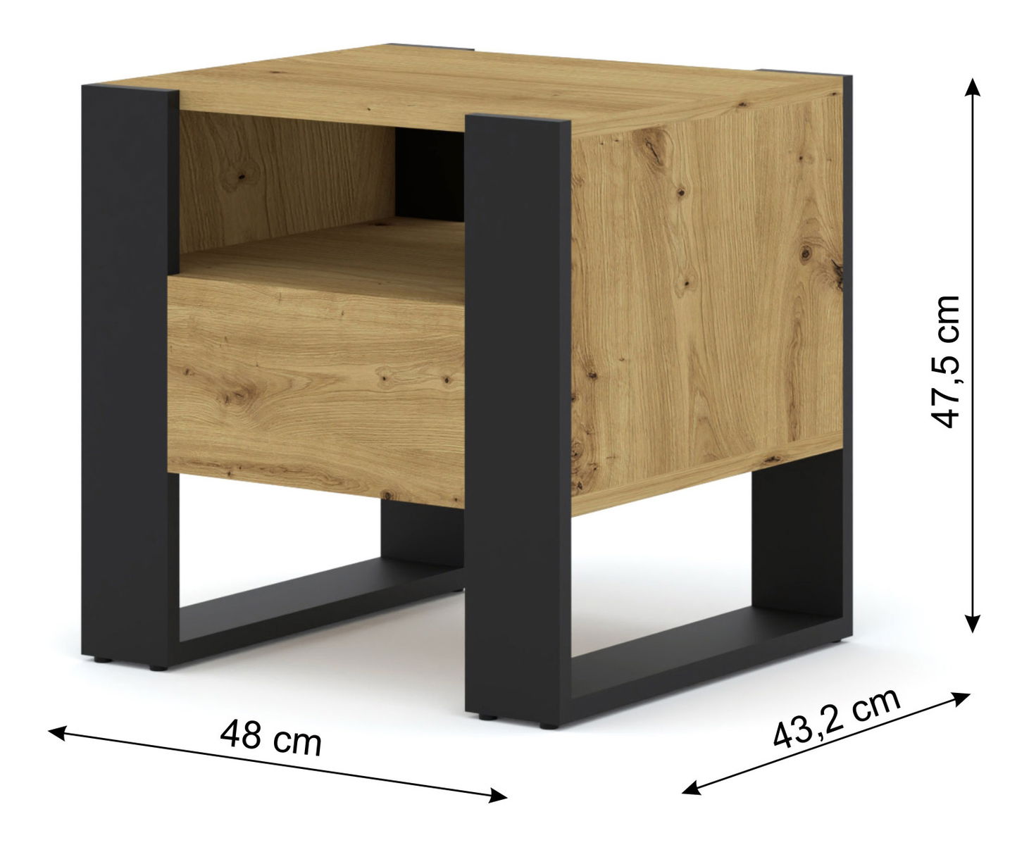 ZobrazitNoční stolek Molli 48 (dub artisan) o výšce 47,5 cm, šířce 48 cm a hloubce 40-43,2 cm je ideálním kusem nábytku pro každou ložnici. Jeho moderní design a kvalitní zpracování vám zaručí, že vám bude sloužit na dlouhá léta. Stolek je vybaven praktickou poličkou, která vám poskytne dostatek úložného prostoru pro knihy, telefon, hodinky, nebo jiné osobní předměty, které potřebujete mít stále po ruce. Jeho dubový povrch s artisan efektem je dalším bonusem, který dodá vaší ložnici útulný a příjemný pocit. Objednejte si tento skvělý stolek a vychutnejte si jeho funkčnost a krásu v pohodlí svého domova.