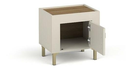 Kam si odložit rozečtenou knížku, brýle, či sklenici s vodou? Noční stolek Mossana MO11 (kašmír) bude Vaším oblíbeným praktickým doplňkem v ložnici. Kromě horní plochy vybavené přečnívajícím okrajem proti sklouznutí položených předmětů má také vnitřní prostor ukrytý za malými dvířky, kam si můžete odložit různé drobnosti, které chcete mít vždy po ruce.