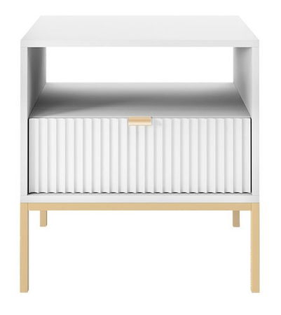 Noční stolek je vyroben s maximální péčí a jistě splní očekávání i těch nejnáročnějších milovníků moderního stylu. Zlaté detaily v podobě úchytu a vysokých nohou mu dodávají jedinečný charakter. Noční stolek se zásuvkou je praktickým řešením pro uchovávání nezbytných věcí na dosah. Díky němu budete mít dokonalý pořádek a stolek bude vždy čistý a uklizený. Noční stolek podtrhne styl a sofistikovanost vaší ložnice. Je to skutečná investice do elegance a atmosféry, která pozvedne prestiž místnosti na novou úroveň.
