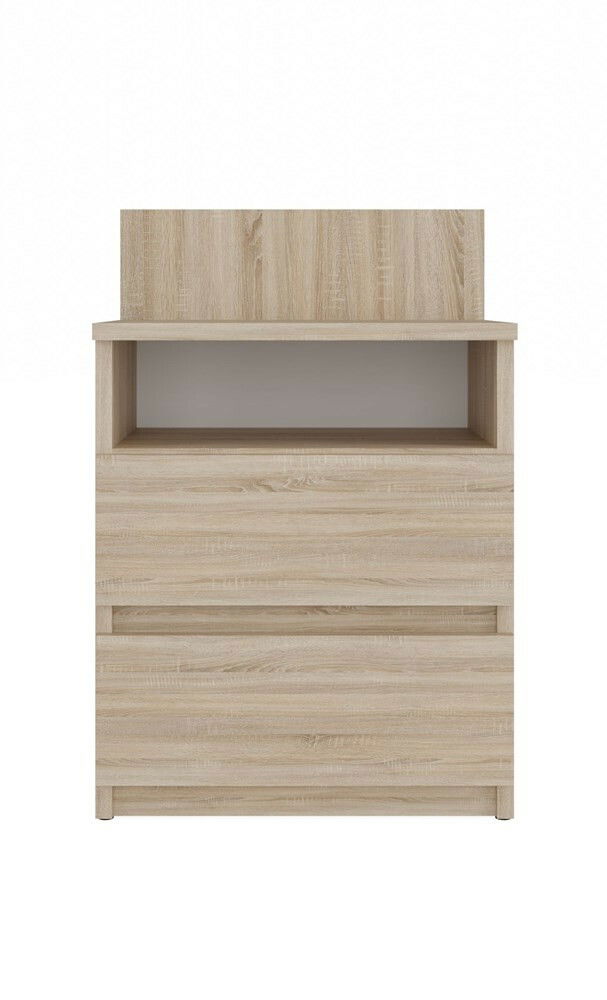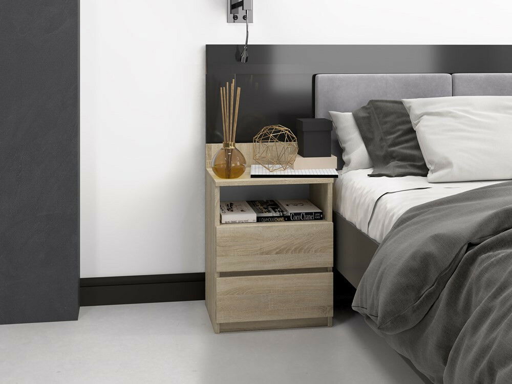 Noční stolek Musecalo 1 v elegantním provedení dub sonoma je ideálním doplňkem každé ložnice, který kombinuje moderní design s praktičností. S minimalistickou konstrukcí a bezúchytkovými frontami zásuvek poskytuje dostatek úložného prostoru pro vaše osobní věci, jako jsou brýle, knihy či mobilní telefon. Vyrobeno z kvalitní laminované dřevotřísky s ABS hranami, zaručuje vysokou odolnost a dlouhou životnost. Zásuvky na válečkových vodítkách zajišťují pohodlné a bezpečné používání. Tento noční stolek je skvělou volbou pro ty, kteří ocení spojení funkčnosti a estetiky.