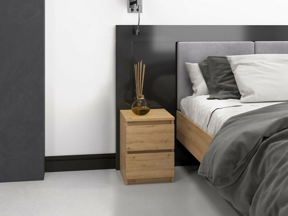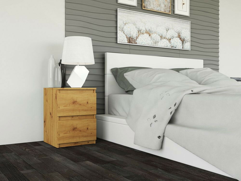 ZobrazitNoční stolek Musecalo 2 v elegantní barvě dub artisan je ideálním doplňkem každé ložnice, kde kombinuje moderní design s praktičností. S minimalistickou konstrukcí a bezúchytovými frontami zásuvek poskytuje pohodlný přístup k vašim oblíbeným knihám, brýlím či mobilnímu telefonu. Vyrobeno z kvalitní laminované dřevotřísky, stolek zaručuje dlouhou životnost a snadnou údržbu. Jeho kompaktní rozměry (30 cm x 30 cm x 40 cm) jej činí ideálním i do menších prostor. Tento noční stolek je skvělou volbou pro ty, kteří ocení spojení funkčnosti a estetiky.