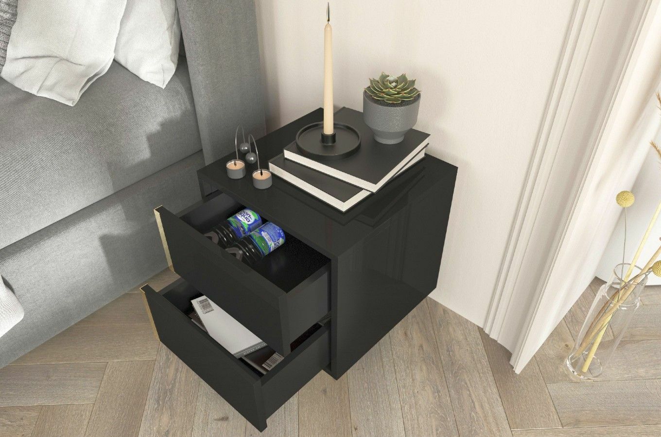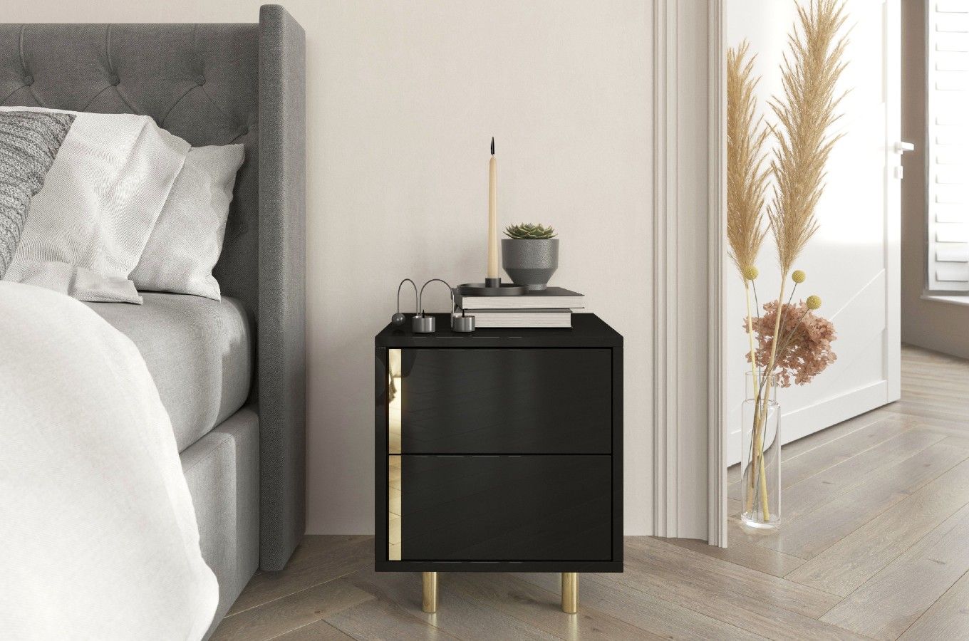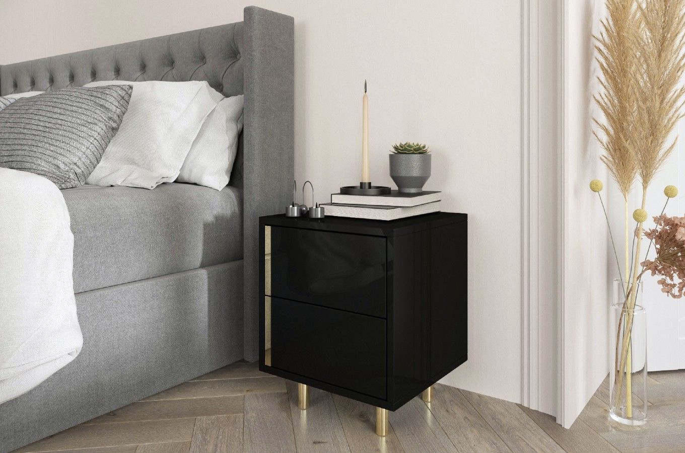 Noční stolek Naturlig Carra (vysoký lesk černý)