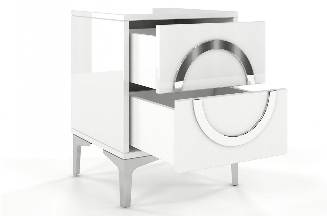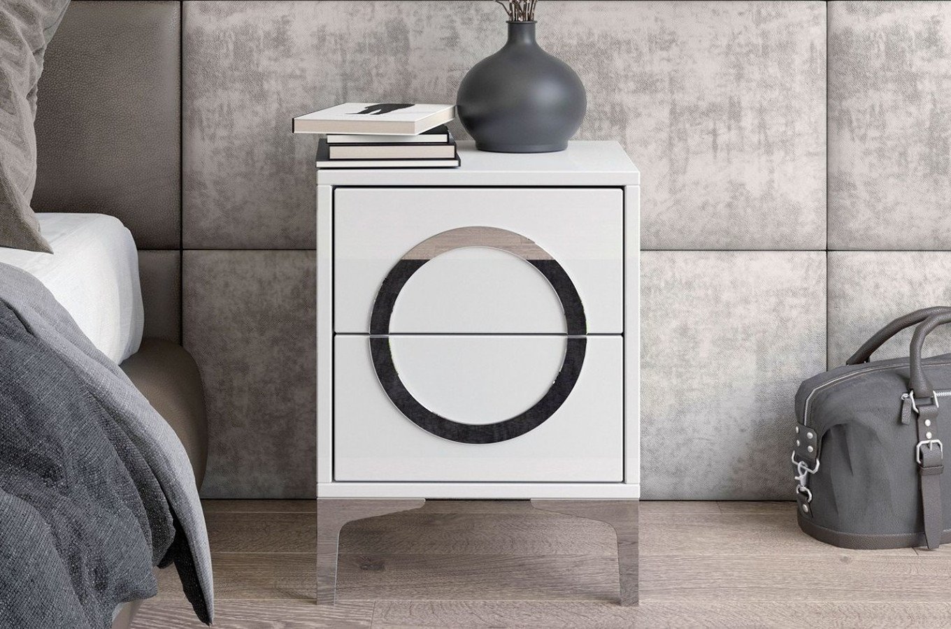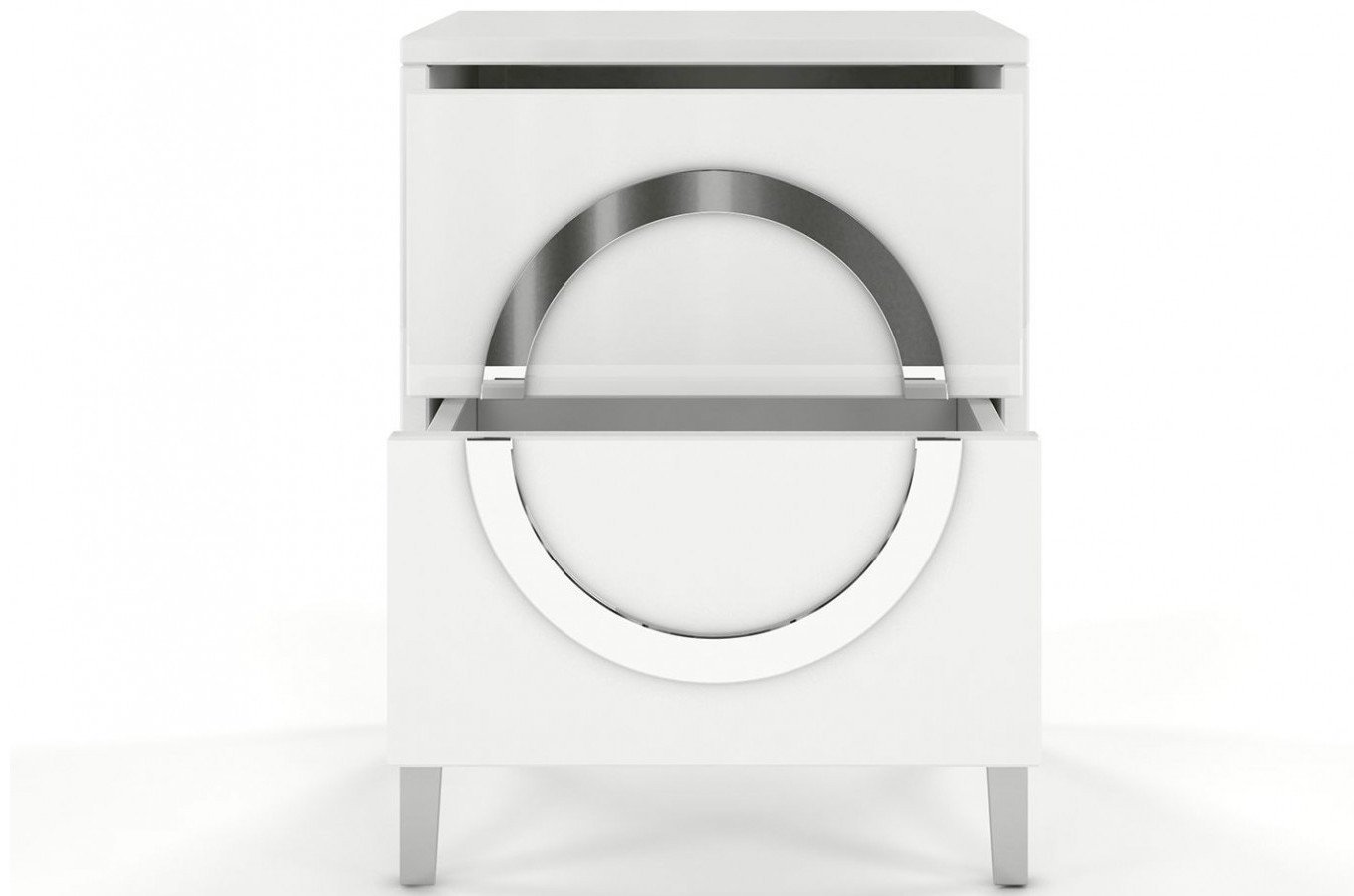 Noční stolek Naturlig Evenna vysoký lesk bílý 54 cm hloubka 38 cm je ideálním doplňkem do vaší ložnice. výšku nožiček 13 cm a vnitřní zásuvky o rozměrech (v.š.h.) 12,7 cm x 28,4 cm x 32,4 cm, což poskytuje dostatek úložného prostoru pro vaše věci. Otevírání zásuvek je možné pomocí funkce push to open, která využívá skryté vodící lišty. má také zdobný prvek v podobě akrylového zrcadla. Vychutnejte si pohodlí a eleganci s tímto nočním stolkem z kolekce Naturlig. Evenna.