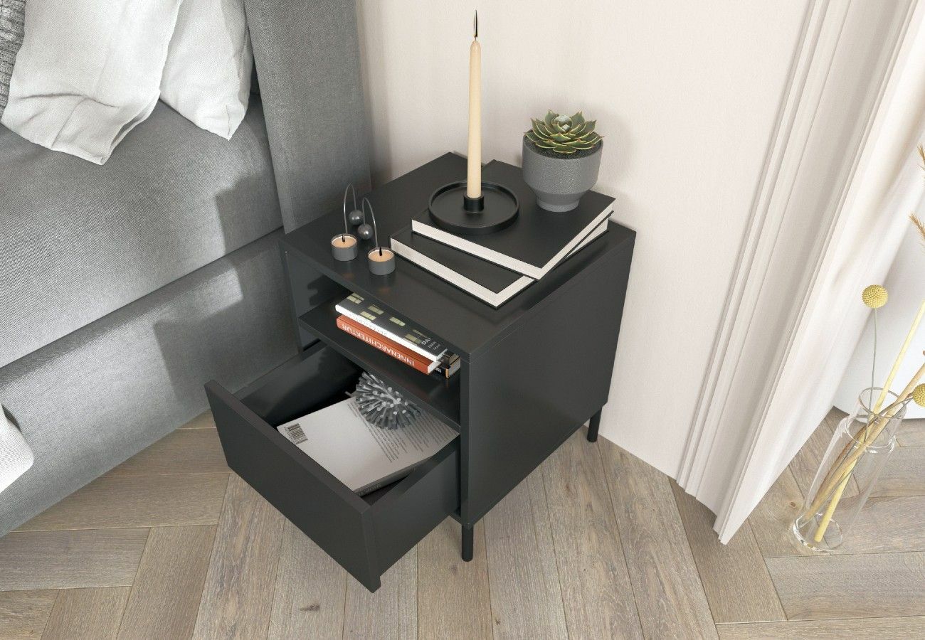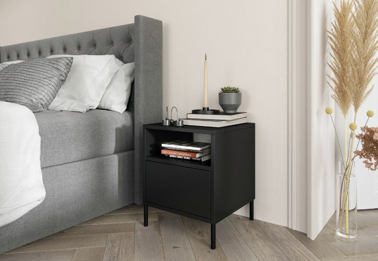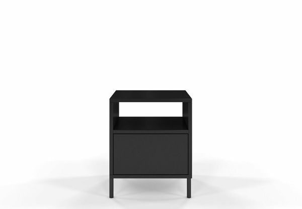 ZobrazitNoční stolek Naturlig Maera (černá) má výšku 57 cm a hloubku 40 cm, vyroben je z kvalitního melaminového materiálu. Stolek má stylový černý povrch a nožičky výšky 20 cm o průměru nohou 2,5 cm. Polička má šířku 36,4 cm a výšku 12,6 cm. Šířka fronty zásuvky je 36,4 cm a výška fronty zásuvky je 18,6 cm. Otevírání zásuvek/dvířek je pomocí push to open závěsů Hettich, vodící lišty jsou teleskopické. Noční stolek Naturlig Maera je praktickým a elegantním doplňkem do každé ložnice.