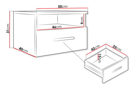 ZobrazitNoční stolek je ideální volbou pro ty, kteří hledají pohodlí a styl. Noční stolek Neralli je skvělým doplňkem do ložnice. Nadčasový model dokonale zapadne do každého aranžmá, od klasického přes minimalistický až po skandinávský. Noční stolek je nezbytností v každé ložnici. Můžete si na něj položit knihu nebo brýle. Je zde prostor i na sklenici horkého čaje. Zásuvku lze použít pro elektronické vybavení, kosmetické výrobky a různé drobnosti. Mimořádně praktický a stylový doplněk k posteli. Rozměry: šířka: 50 cm, výška: 31 cm, hloubka: 40 cm Provedení: laminovaná dřevotříska tloušťky 16 mm, okraj PVC 0,5 mm, zadní část nábytku je vyrobena z HDF desky, kuličková vedení, plastové rukojeti, Záruka: 24 měsíců