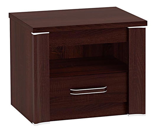 Praktický noční stolek se zásuvkou a otevřeným odkládacím prostorem.