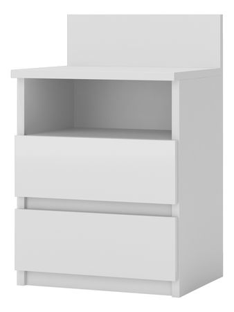 Jednoduchý, ale velmi praktický noční stolek Vám velmi dobře poslouží jako odkládací prostor na knížku, sklenici s vodou, či brýle. Má otevřenou poličku a dvě praktické zásuvky.