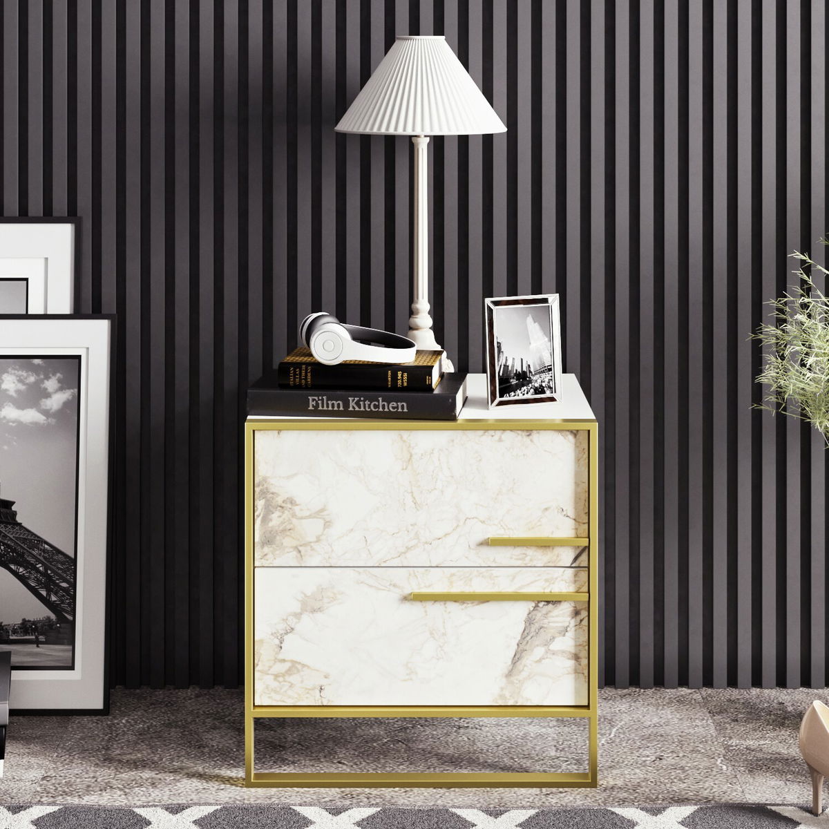 Noční stolek Poppy 3 (Zlatá + Bílá)