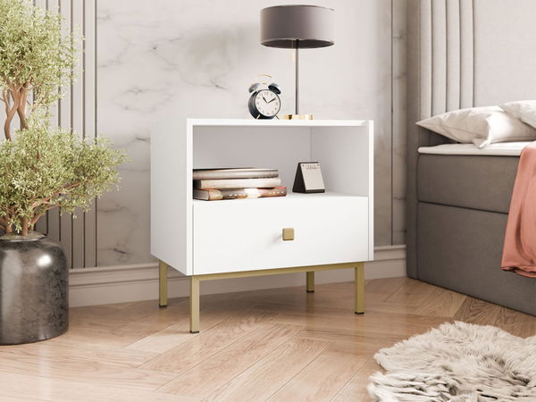 Noční stolek Probazzo 1SZ (bílá + zlatá)