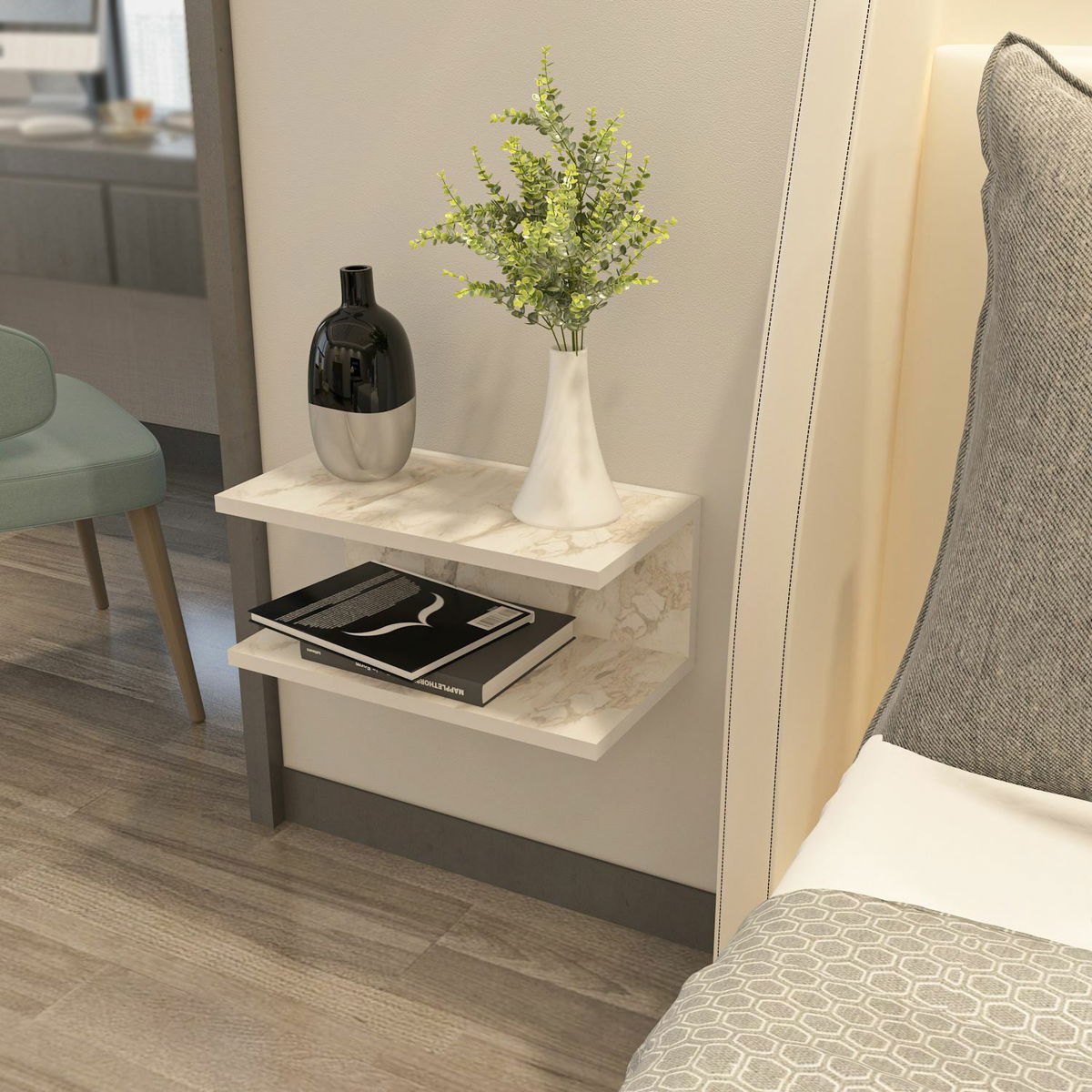 Noční stolek Ramondes (mramor bílý)