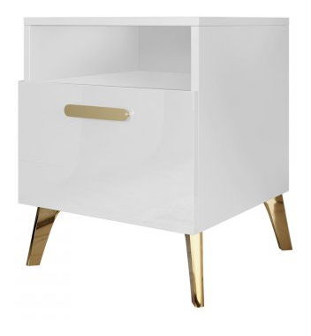 - Noční stolek Rostasi 1SZ (bílá + bílá lesklá + zlatá)