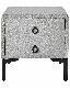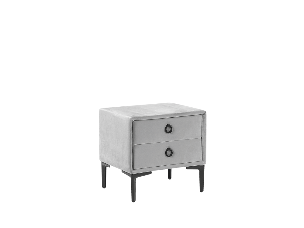 Tento elegantní a praktický noční stolek je dokonalým doplňkem každé moderně zařízené ložnice. Jeho tělo vyrobeno z odolného a pevného MDF materiálu je pokryto vysoce kvalitním sametem v šedé barvě, který zdůrazňuje jeho klasický design. Černé kovové nohy a úchyty mu dodávají minimalistický akcent, díky čemuž je stolek vhodný i do tradičnějších interiérů. Dvě prostorné zásuvky jsou dokonalým místem pro uložení všech potřebných předmětů, zatímco široká vrchní deska stolu nabízí dostatek prostoru pro lampu, svíčku nebo jiné dekorace.