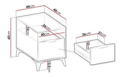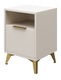 Noční stolek je ideální volbou pro ty, kteří hledají pohodlí a styl. Dobře zorganizovaná ložnice poskytuje každodenní komfort během relaxace. Noční stolek Siprynt 1SZ dodá designu tečku. Tento malý kus nábytku je mimořádně funkční. Jeho design nabízí prostornou zásuvku, polici a prostornou desku. Je to perfektní základ pro knihy, noční lampu nebo telefon. Další výhodou prezentovaného nočního stolku jsou jeho vysoké nohy, které vám umožní udržet pořádek pod nábytkem. Praktickou vrstvu prezentovaného nočního stolku doplňuje krásná vizuální koule. Tlumený odstín v kombinaci se zlatými detaily se bude skvěle hodit do moderně zařízených ložnic. Rozměry: šířka: 44 cm výška: 60 cm hloubka: 40 cm Provedení: korpus: 16 mm silná laminovaná deska čela: 16 mm silná MDF deska ABS hrana zadní stěna z HDF desky nohy a rukojeti: kov zlaté barvy kuličková vedení
