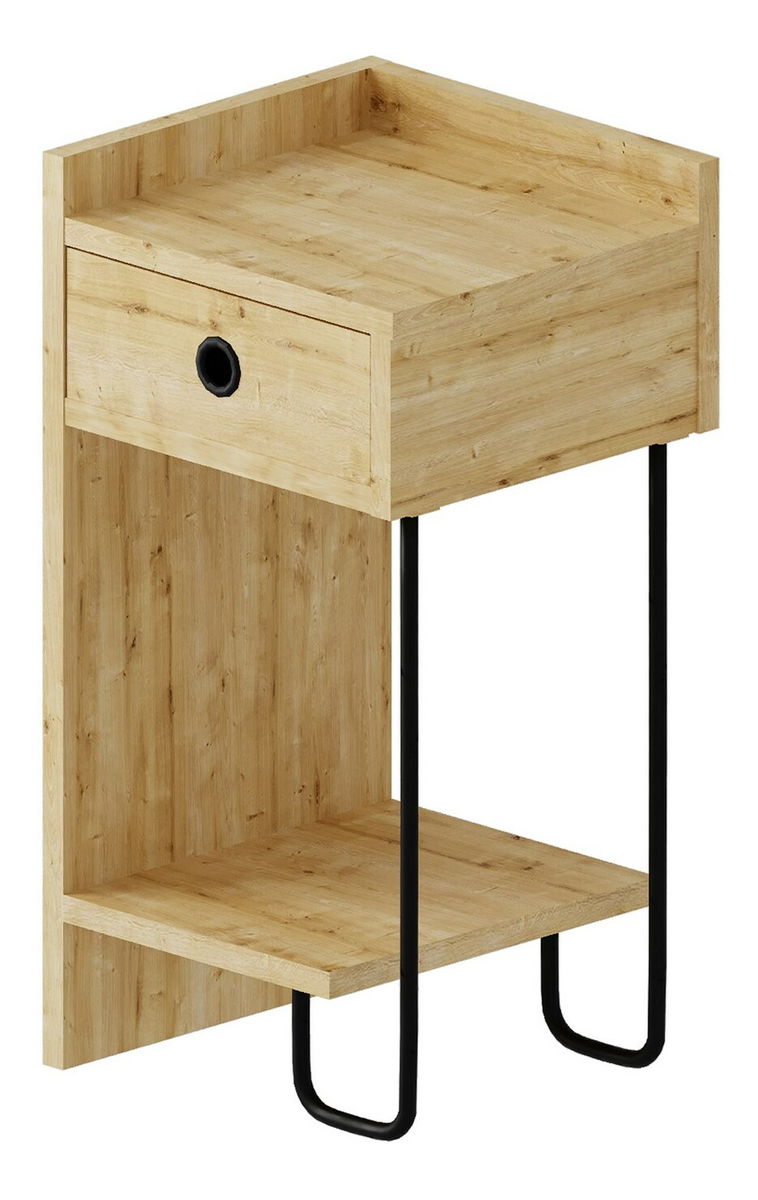 ZobrazitNoční stolek - Simon (Dub) je skvělým doplňkem pro vaši ložnici. S výškou 61 cm a šířkou 32 cm je dostatečně velký na to, abyste na něm měli vše potřebné u postele. nebo jiných osobních věcí. Stolek je vyroben z kvalitního dubového dřeva, což zaručuje jeho pevnost a odolnost. Jeho elegantní design vám přinese pocit luxusu do vašeho interiéru. Noční stolek - Simon (Dub) je skvělou volbou pro ty, kteří hledají funkční a elegantní kousek nábytku pro svou ložnici.